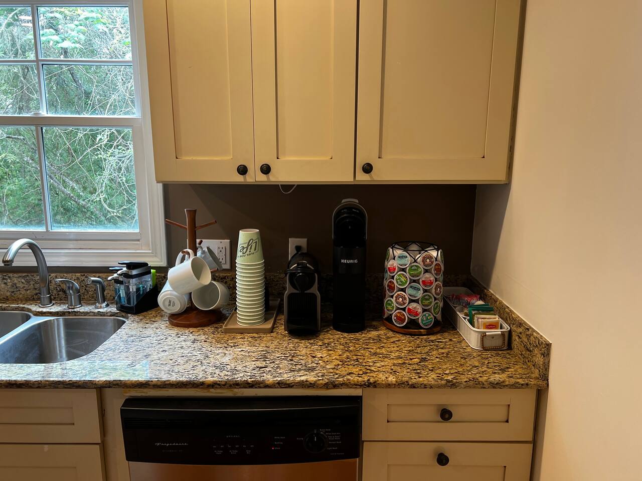 Water, coffee, and snacks are yours to enjoy.